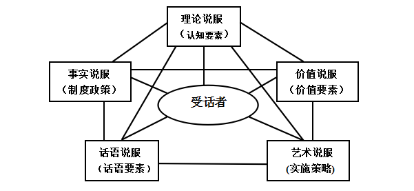基于这些分析结果,再结合现代说服学,可以概括意识形态说服机制五大核心要素:生发于认知要素的理论说服,生发于制度政策的事实说服,生发于价值要素的价值说服,生发于话语要素的话语说服,生发于实施策略的艺术说服。