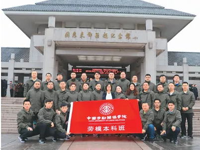 ▲ 图为“中国劳动关系学院劳模本科班”在周恩来邓颖超纪念馆前的合影。(来源:人民日报海外版 2018年7月5日)