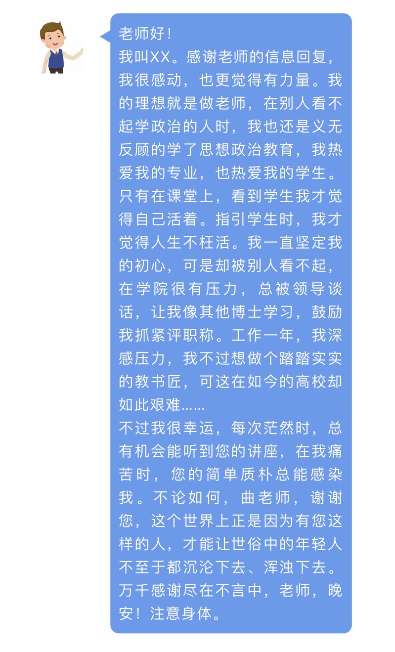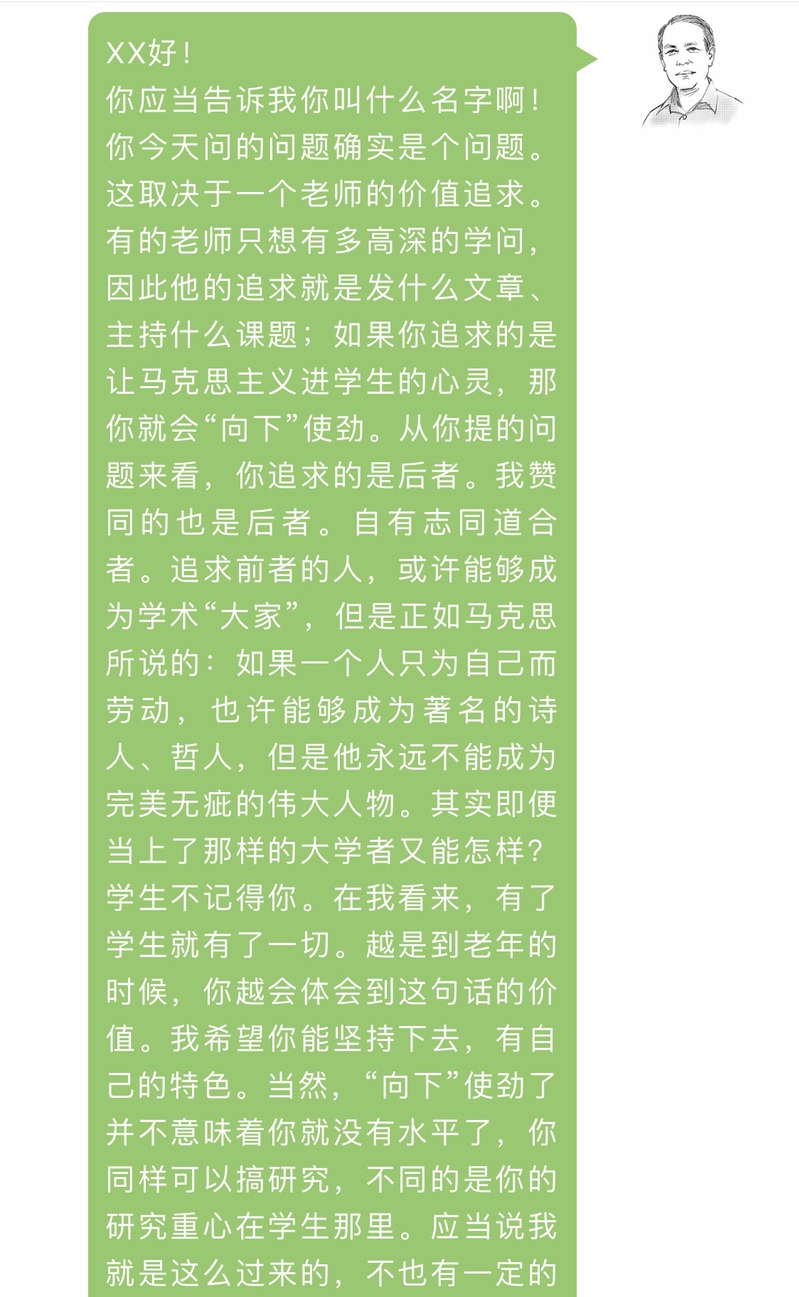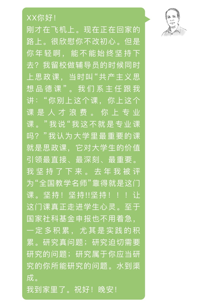 这段时间可能与申报国家社会科学基金项目有关系吧,好几个老师问我怎样处理好思政课教学和科研的关系?因为近日太忙,没有时间系统地谈这个问题。这里我把我和一个思政课教师此前的微信交流推送给大家分享,因为是有感而发的,大家可再仔细推敲,“取其所长,去其所短。”