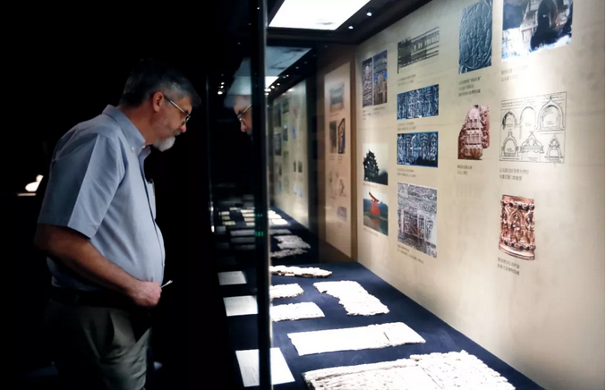 作为亚洲文明对话大会系列活动“亚洲文明联展”的分展,“器服物佩好无疆——东西文明交汇的阿富汗国家宝藏”展览正在清华大学艺术博物馆举行。5月17日,观众在清华大学艺术博物馆参观阿富汗国家宝藏展。